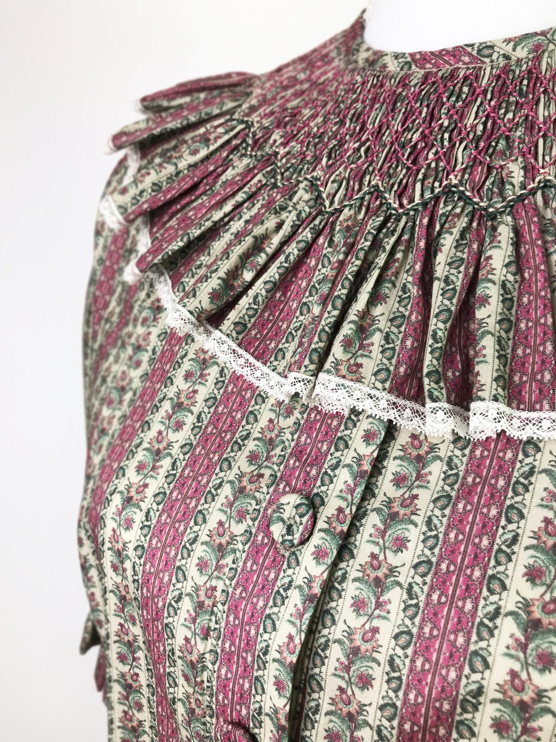 El cuello María es un cuello bordado totalmente a mano en punto smock o nido de abeja. Se fija a las camisas de la colección con unas presillas que no se ven.