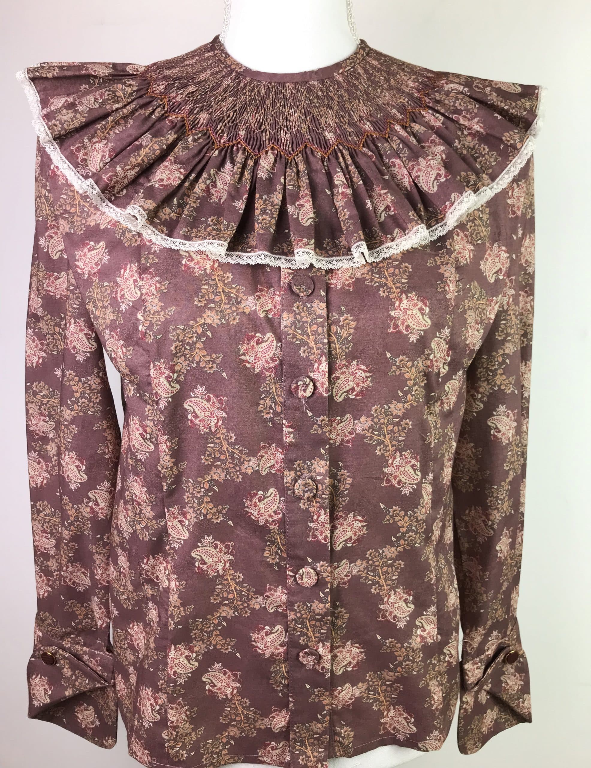 El cuello María es un cuello bordado totalmente a mano en punto smock o nido de abeja. Se fija a las camisas de la colección con unas presillas que no se ven.
