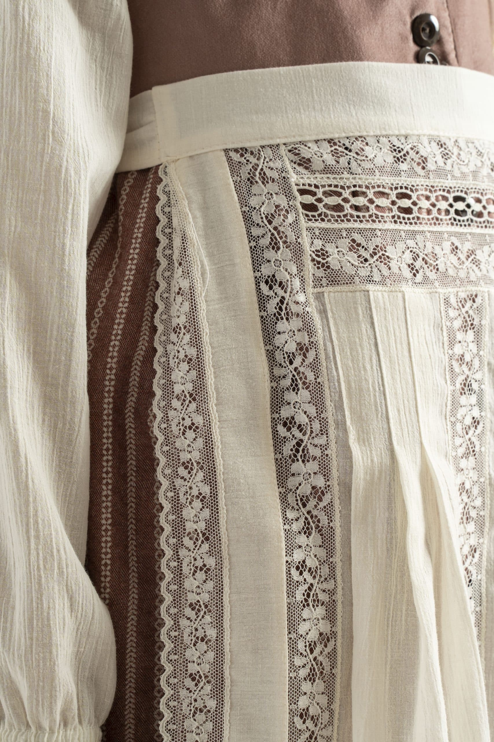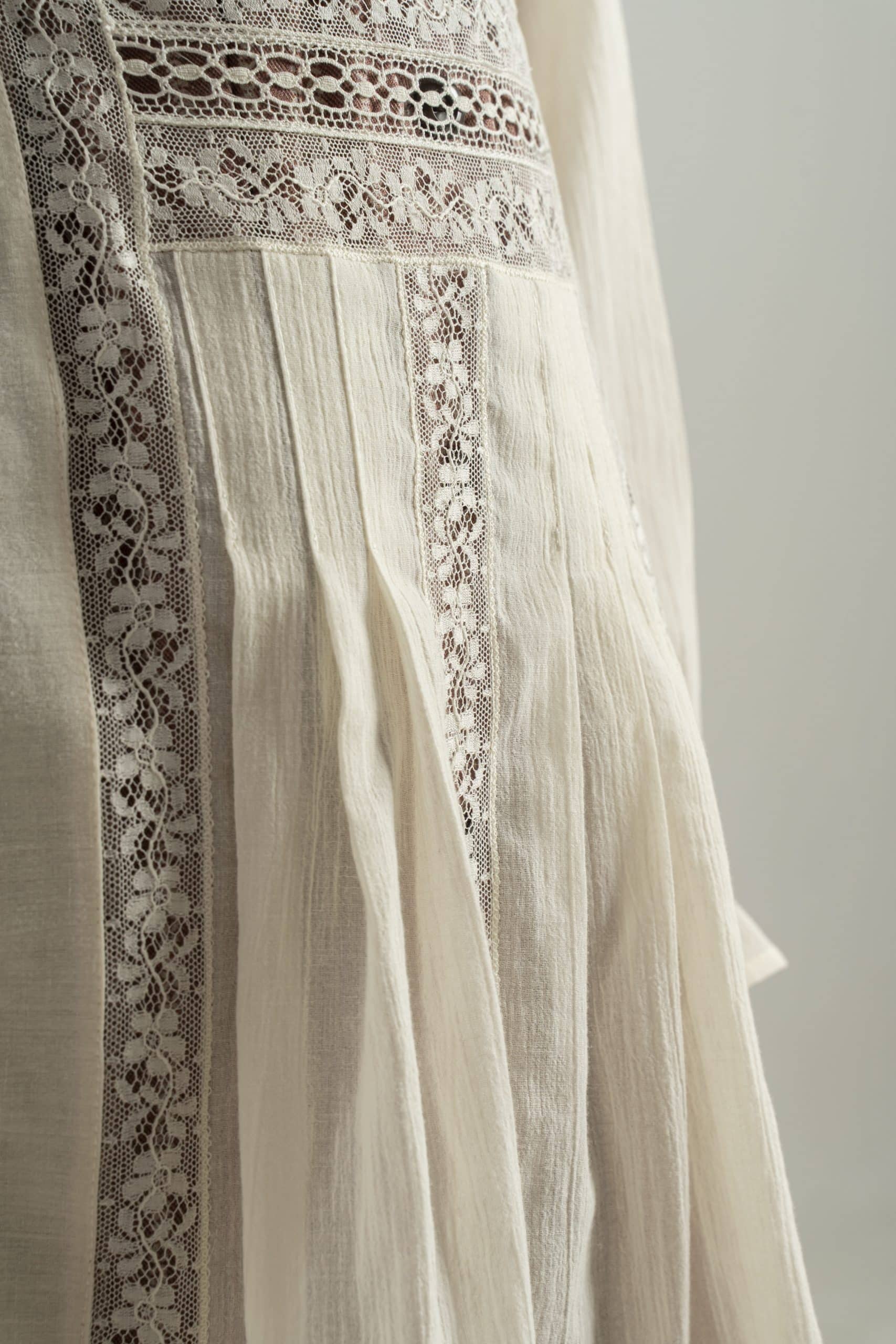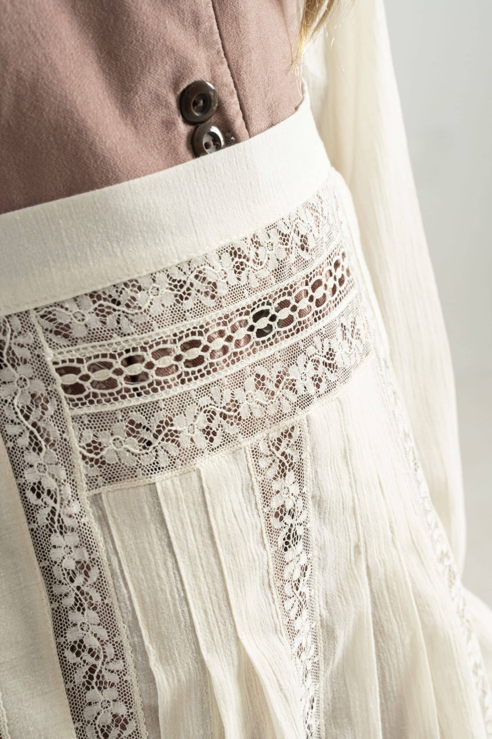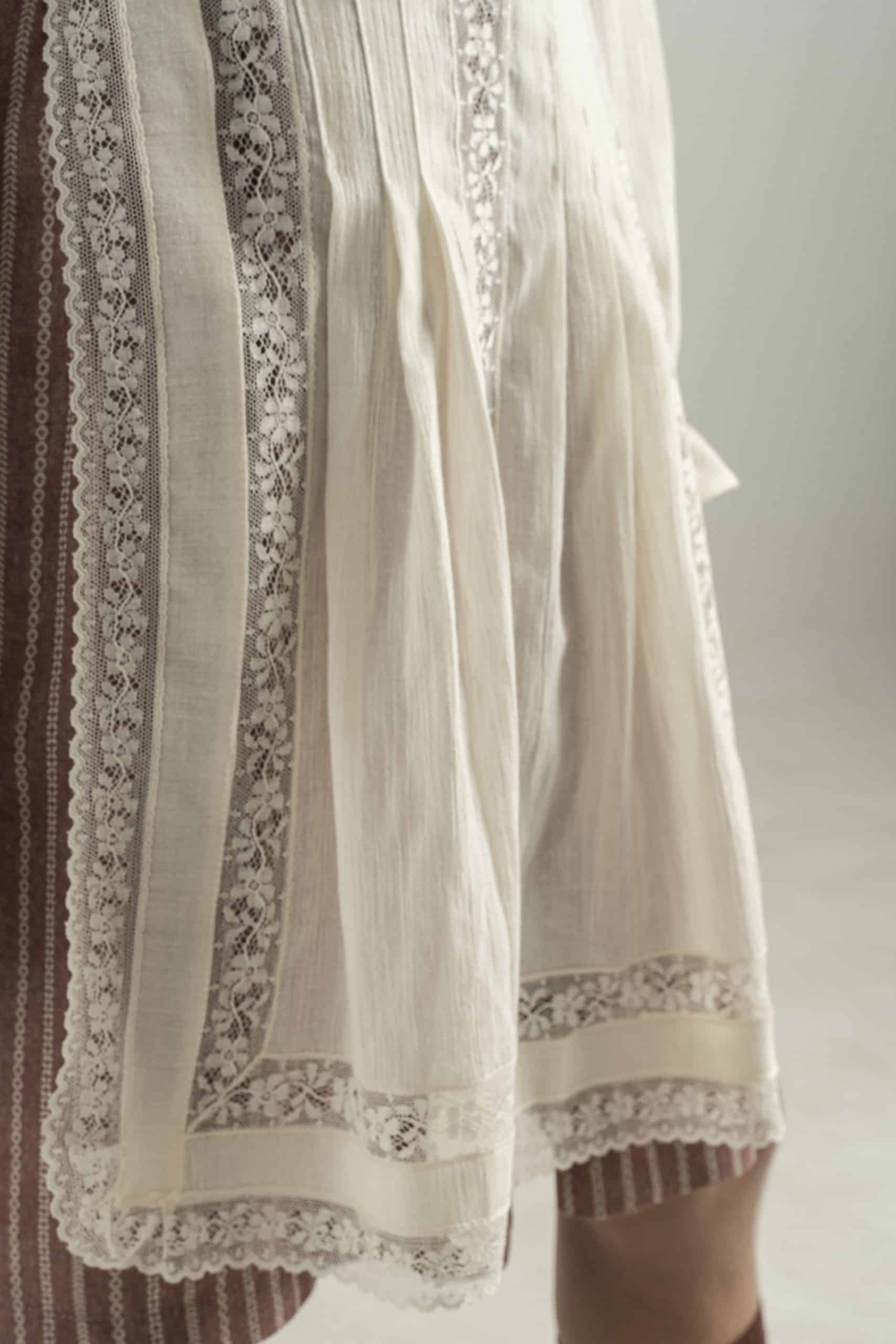 Delantal en seda con delicados encajes de valencienne francés. El delantal se hace bajo pedido con un plazo de entrega de 15 días laborables. Este delantal se le pueden hacer todas las modificaciones deseadas, se puede cambiar el tejido, el largo, los bordados, las puntillas, el diseño, … Si queréis una versión de este vestido modificada poneros en contacto con nosotros en el 628429697 y os ayudaremos a realizar cualquier cosa que tengáis en mente. Las modificaciones tienen un coste que se os presupuestará una vez el nuevo diseño este definido.