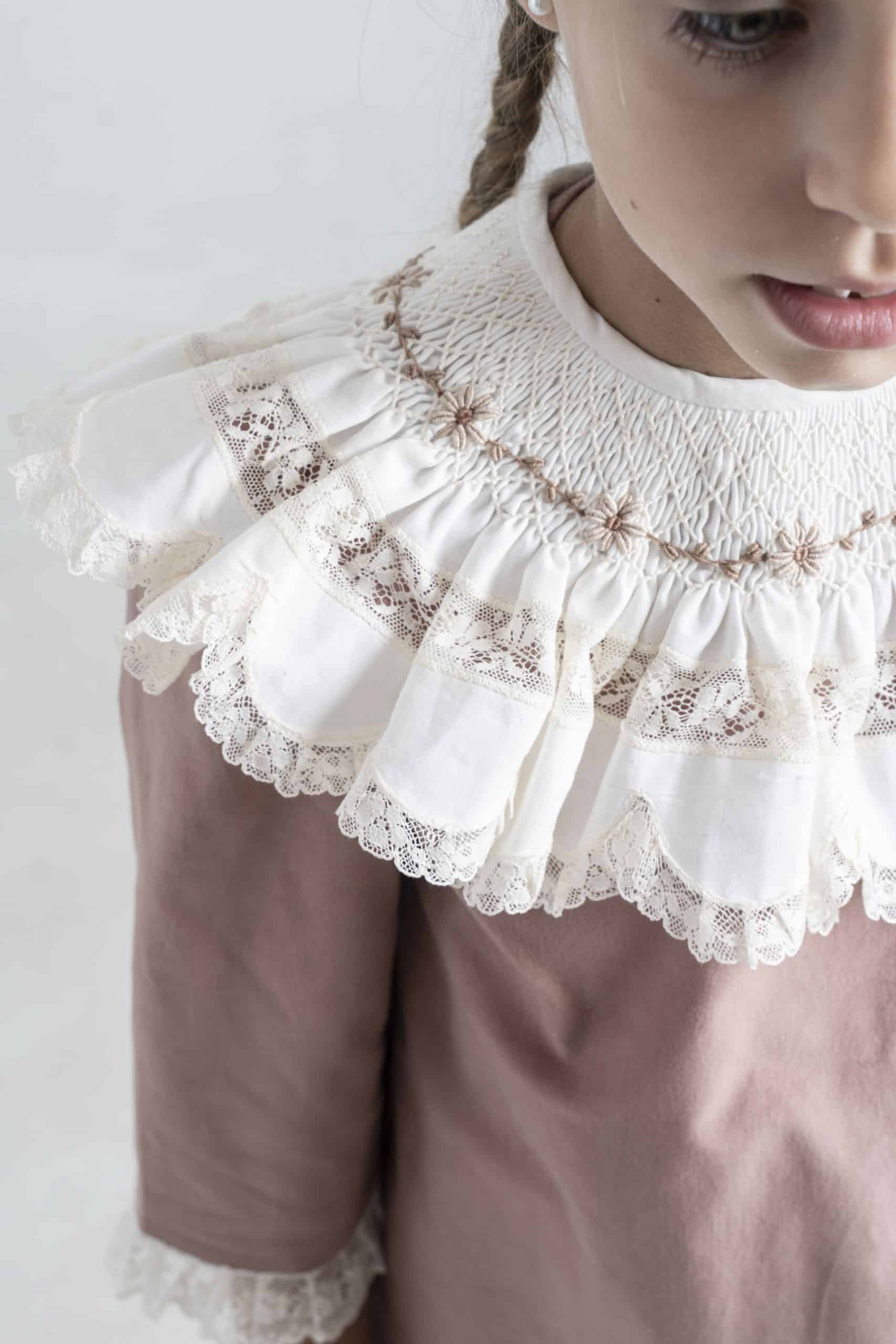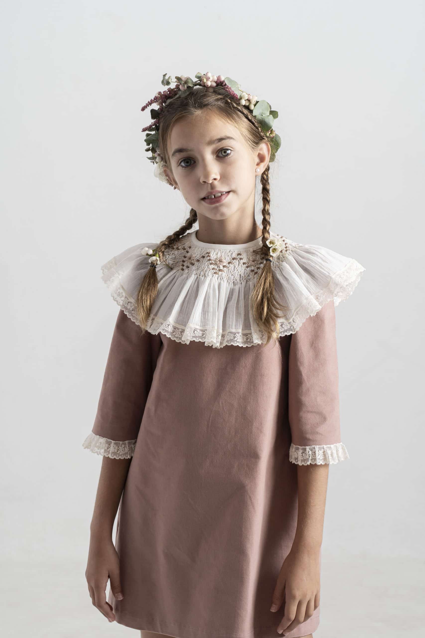Vestido en terciopelo de Algodón y delicados encajes de valencienne francés. El vestido se hace bajo pedido con un plazo de entrega de 15 días laborables. En este vestido se le pueden hacer todas las modificaciones deseadas, se puede cambiar el tejido, el largo, los bordados, las puntillas, el diseño, modificar las mangas… Si queréis una versión de este vestido modificada poneros en contacto con nosotros en el 628429697 y os ayudaremos a realizar cualquier cosa que tengáis en mente. Las modificaciones tienen un coste que se os presupuestará una vez el nuevo diseño este definido.
