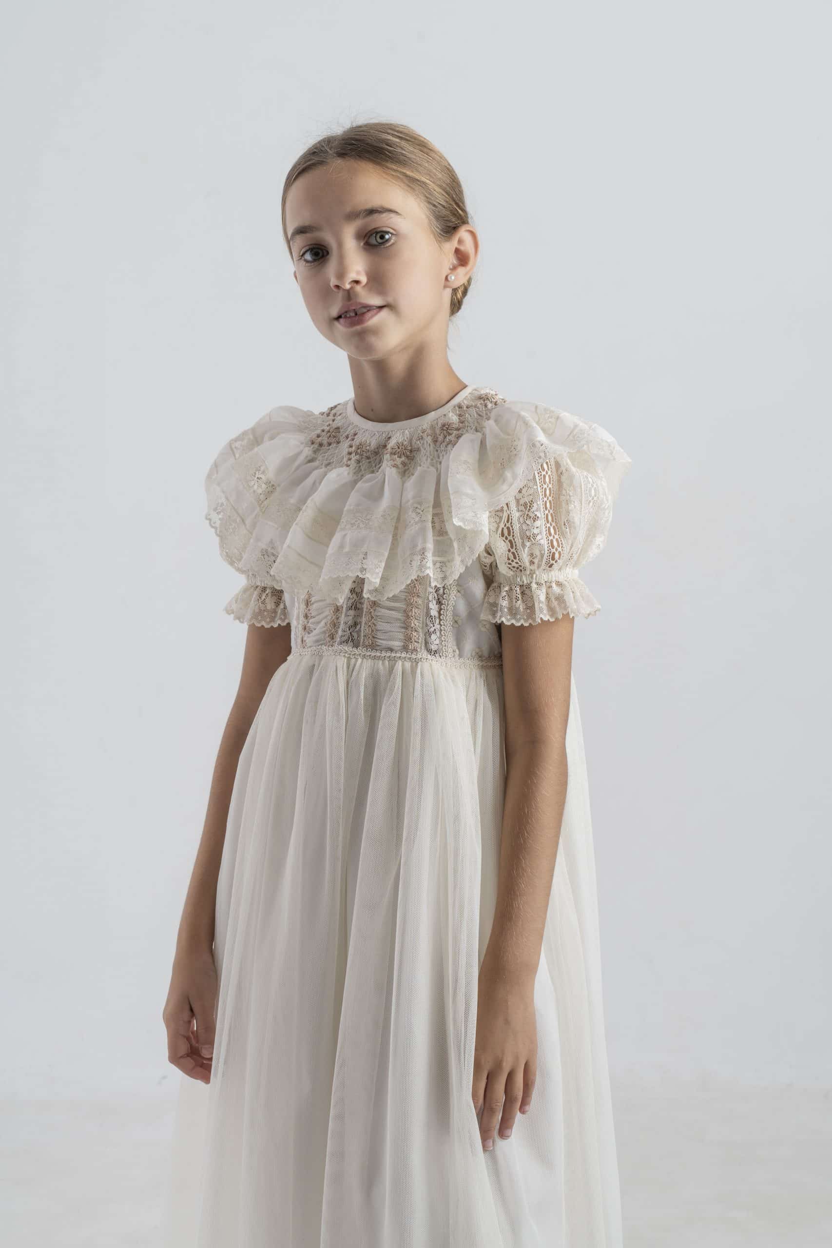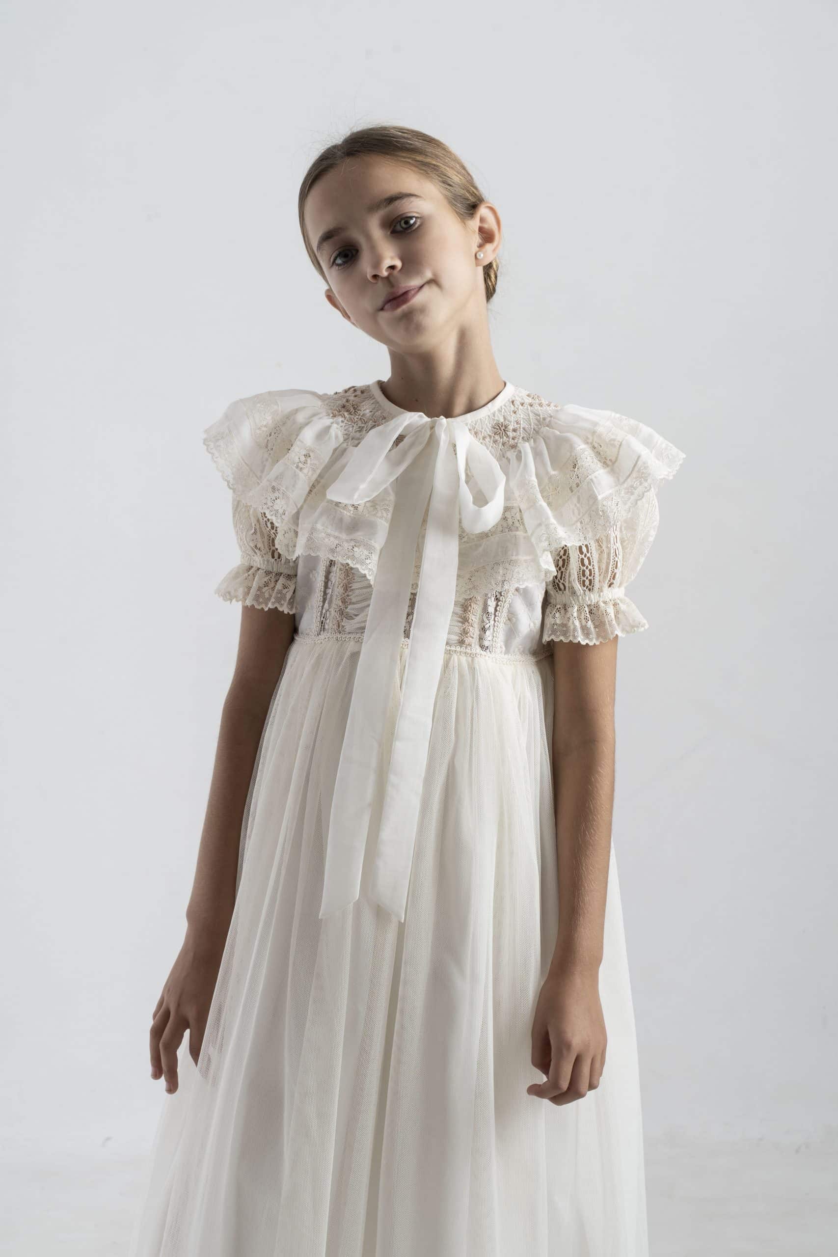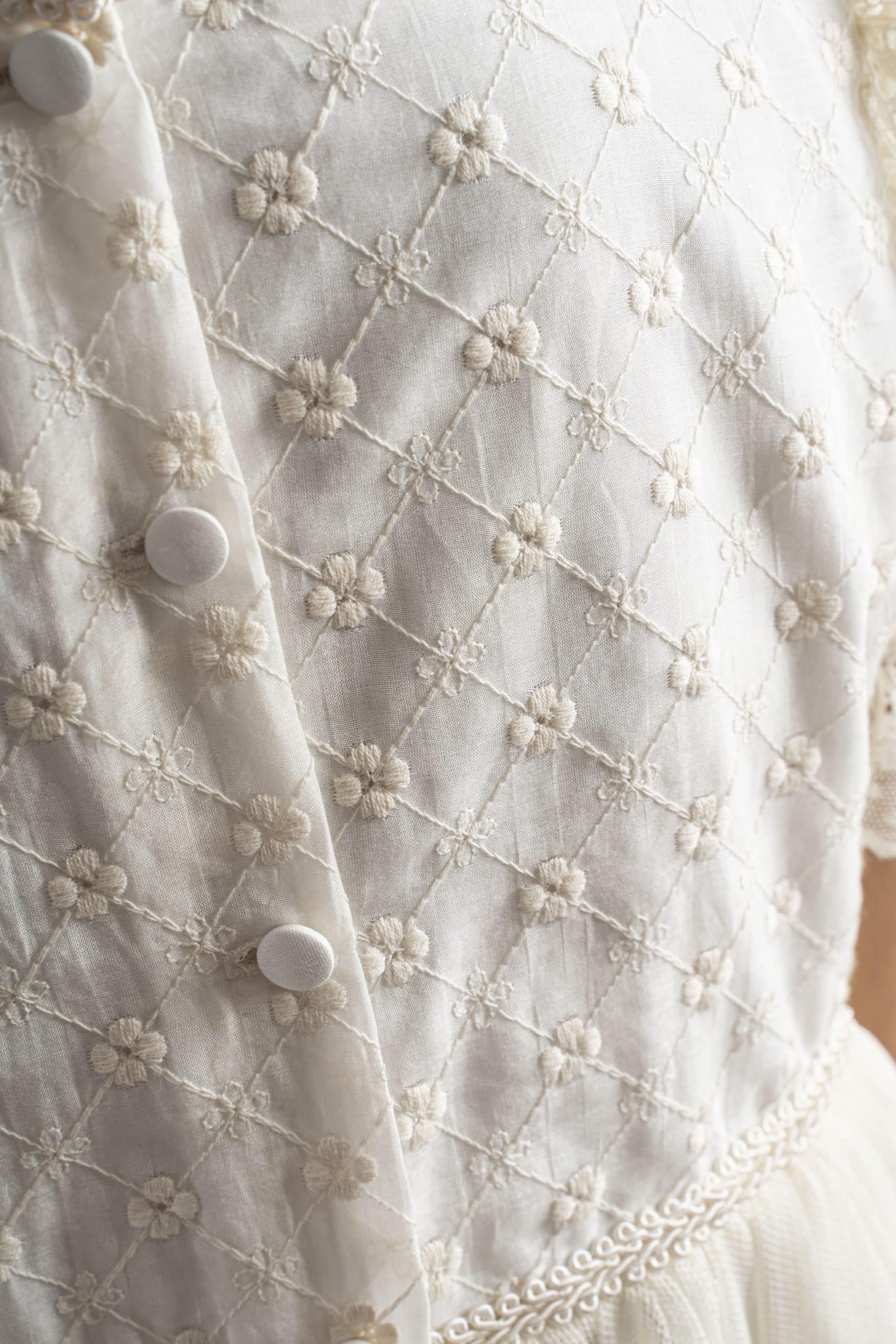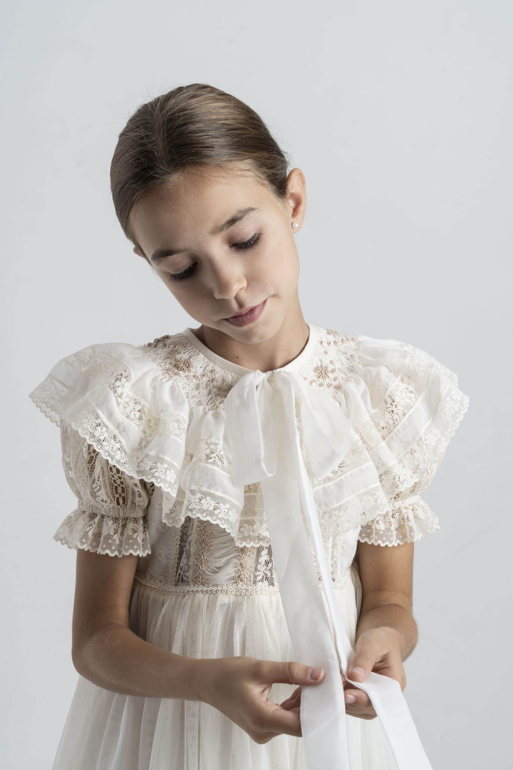 Vestido hecho en tul de algodón con bordado en nido de abeja hecho a mano. El vestido tiene delicados encajes de Valencienne francés. El plazo de entrega son 6 semanas. El vestido se hace a medida de modo que en los comentarios nos tenéis que especificar la fecha del evento, la talla de la niña, la edad, la altura, y las medidas, y si queda mucho para el evento os llamaremos para confirmar todos estos datos cuando se acerque el día  del evento y vayamos a empezar a confeccionar. Aquellas que lo deseéis, podéis venir a ver los vestidos en vivo pidiendo cita y a que tomemos medida a la niña. En la última foto se explica como tomar las medidas.