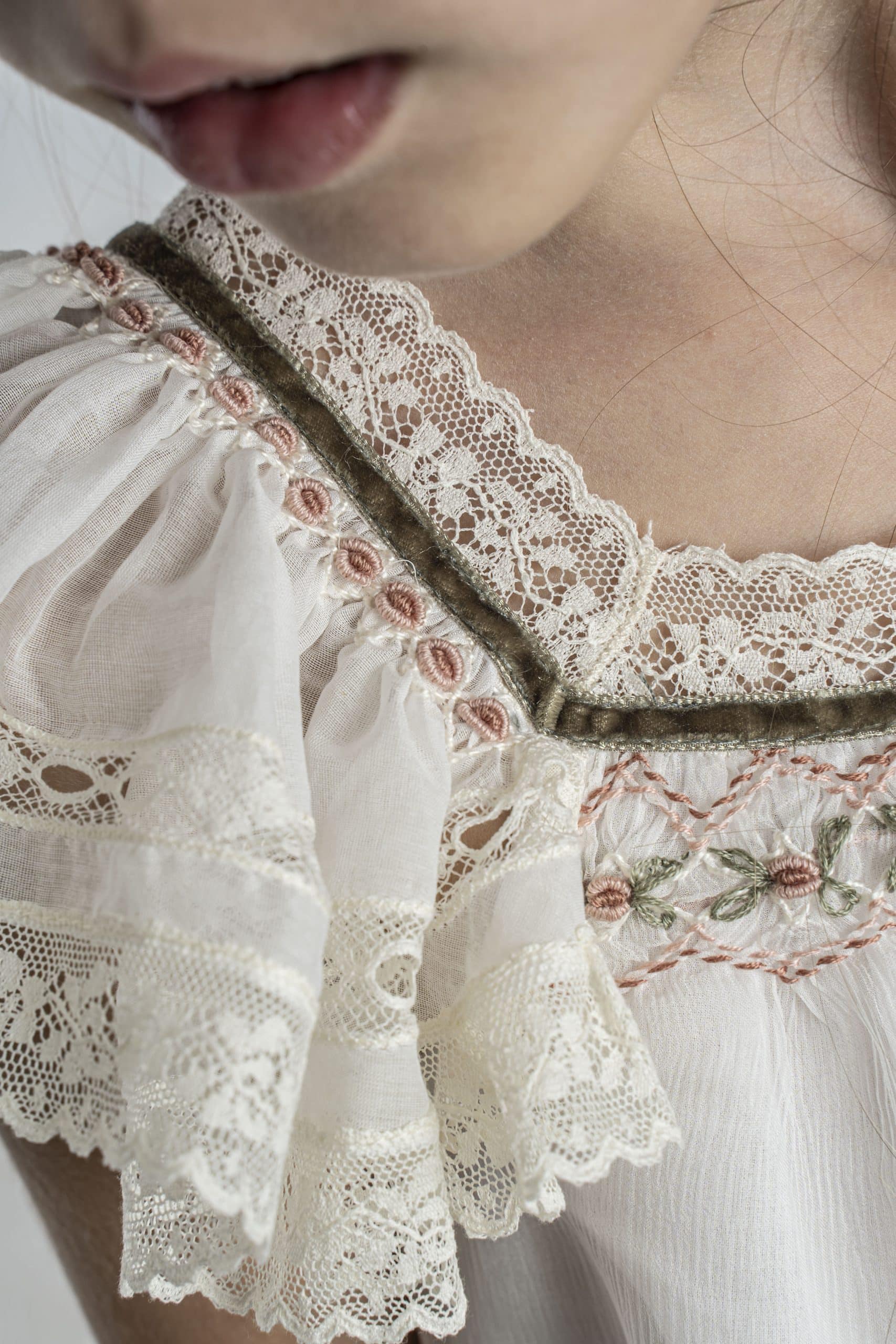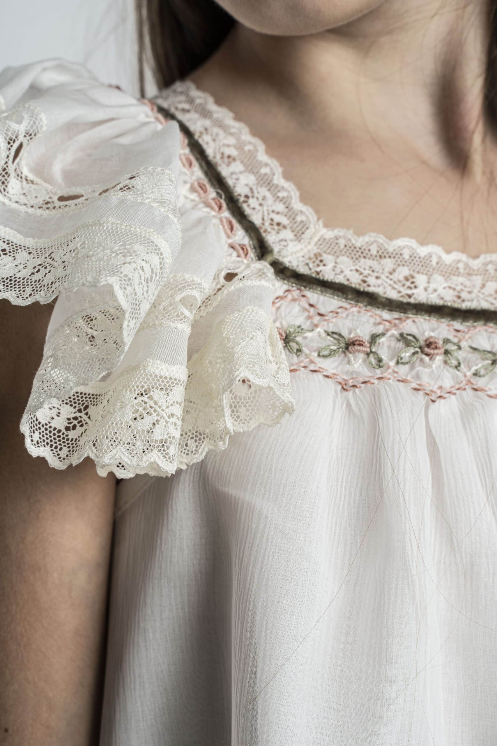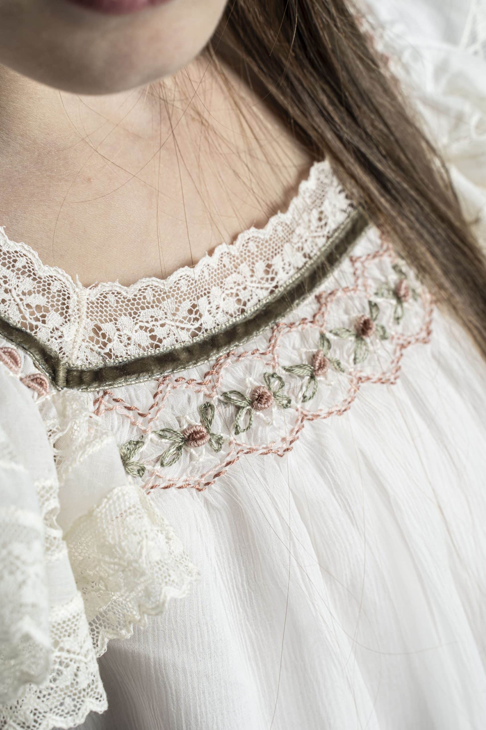 Vestido bordado a mano, con delicados encajes de valencienne francés. El vestido de hace bajo pedido con un plazo de entrega de 20 días laborables. Este vestido se le pueden hacer todas las modificaciones deseadas, se puede cambiar el tejido, el largo, los bordados, las puntillas, el diseño, modificar las mangas… Si queréis una versión de este vestido modificada poneros en contacto con nosotros en el 628429697 y os ayudaremos a realizar cualquier cosa que tengáis en mente. Las modificaciones tienen un coste que se os presupuestará una vez el nuevo diseño este definido.